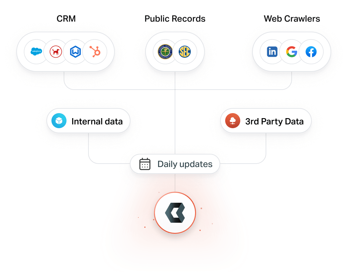 Infrastructure monitors news, filings, press releases, databases, and the open web 24/7 — filtering signal from noise to detect events that matter. From executive moves to liquidity events, we surface the moments most relevant to wealth teams.